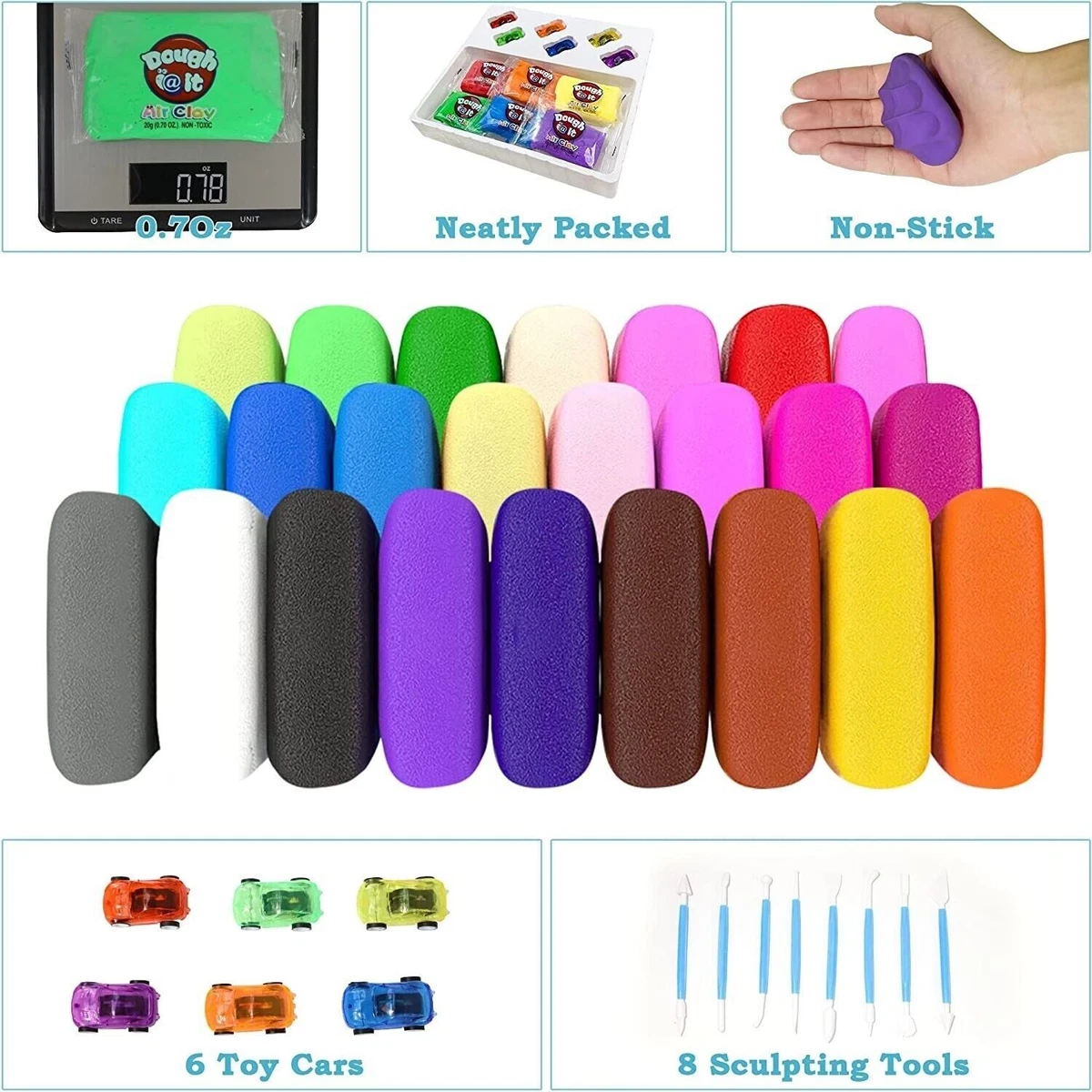 24 Colors Air Dry Clay For Kids With 6 Pull Back Toy Car Ultra Light And Soft Ebay